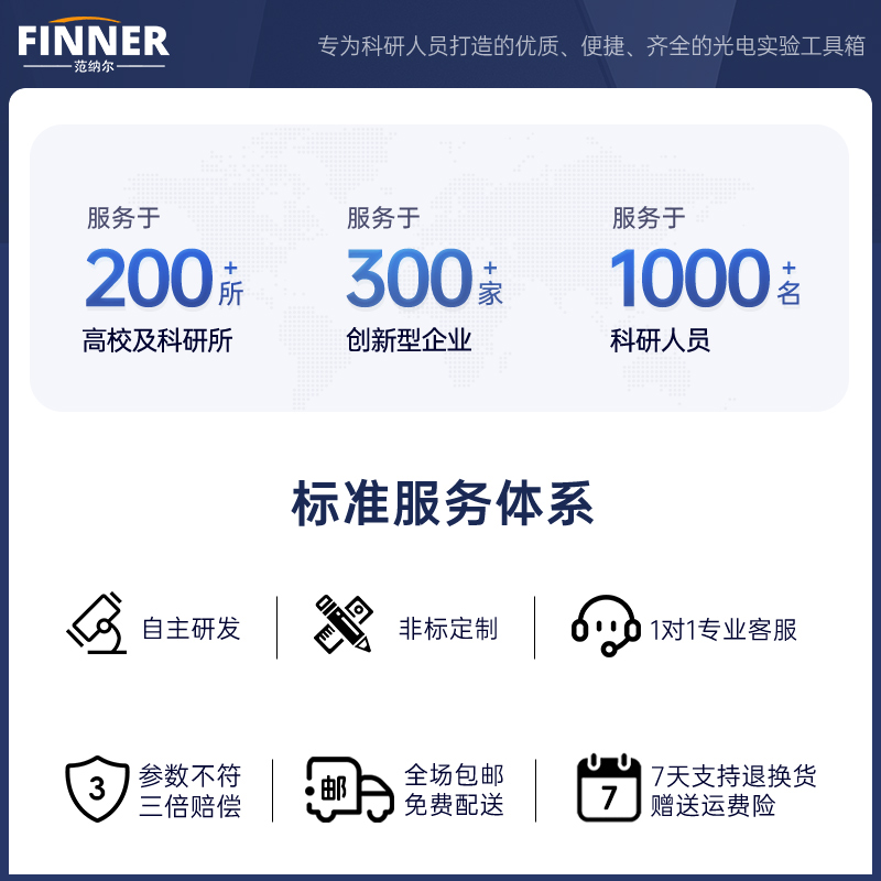 支持支付宝、微信、银行汇款及签订合同,可开正规发票,详情可咨询客服。 单位名称:陕西范纳尔光电科技有限公司 联系电话:18792889971 开户银行:中国建设银行股份有限公司西安大雁塔南广场支行 账 号:61050110427200000309 邮 箱:info@finner.com.cn 注:如需开通货到付款,请拨打热线电话。 |